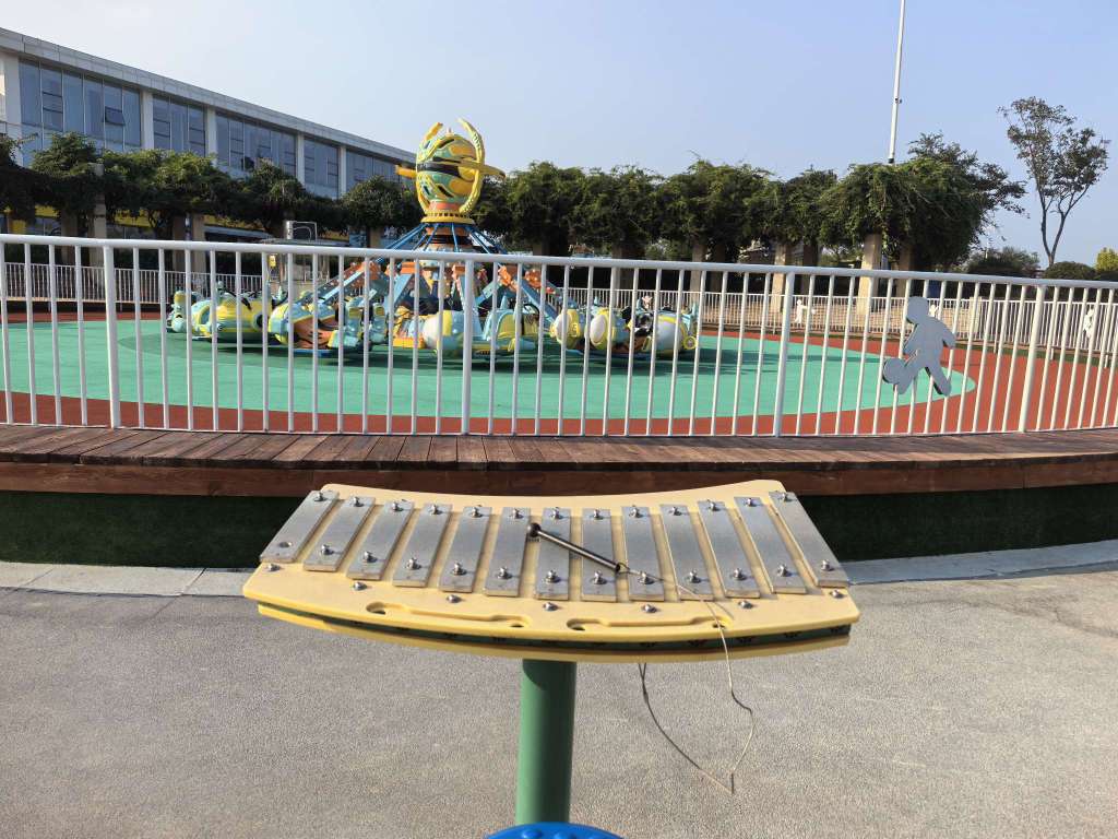父亲好奇地敲了敲游乐园的乐器,它们发出简单的旋律。我所感受的是:千帆过尽,感谢生活让我拥有此刻的美好。